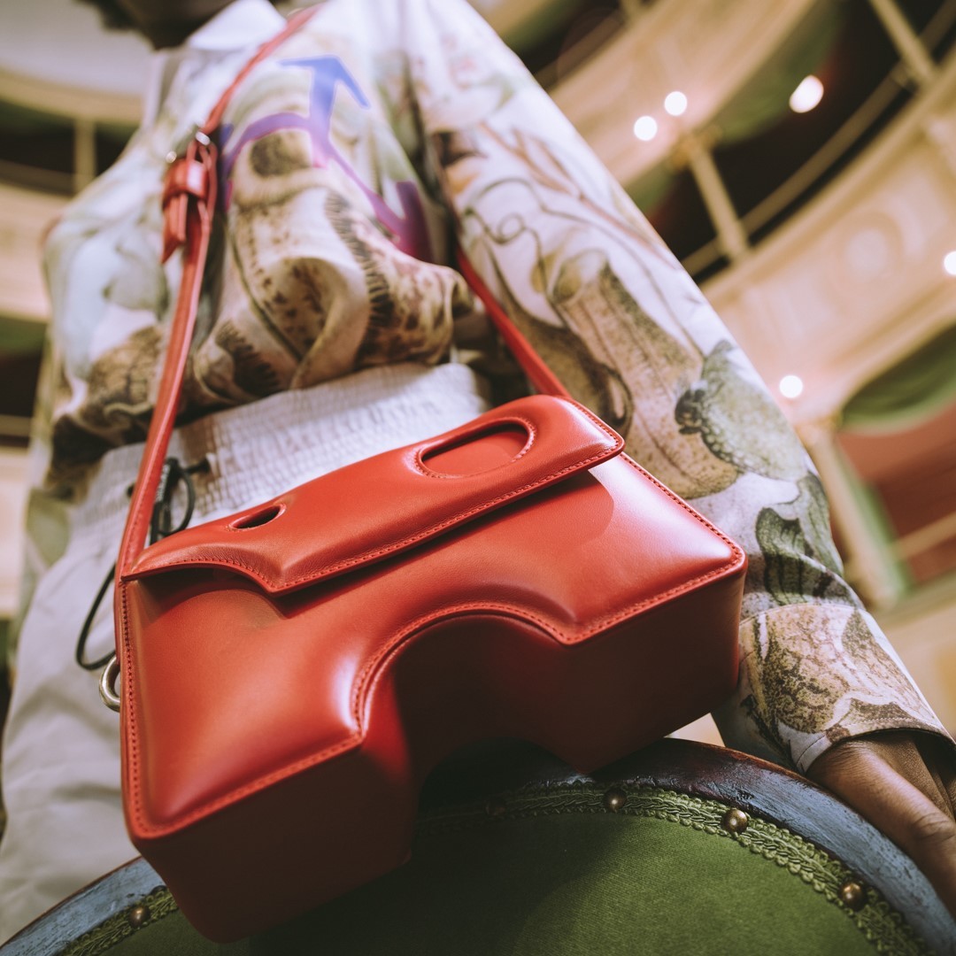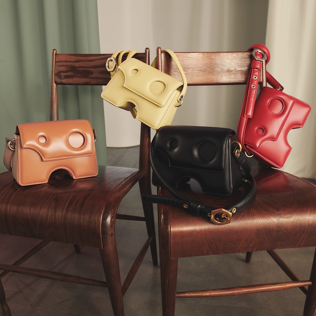 柔软圆润的皮革以及镂空设计,削弱了方正包型的沉闷感,显得活泼可爱。翻盖镂空设计则避免了Burrow Bag包身镂空不方便装物的问题,更具实用性。该系列共有极简黑白、亮眼的红色、淡黄及棕色可供选择。