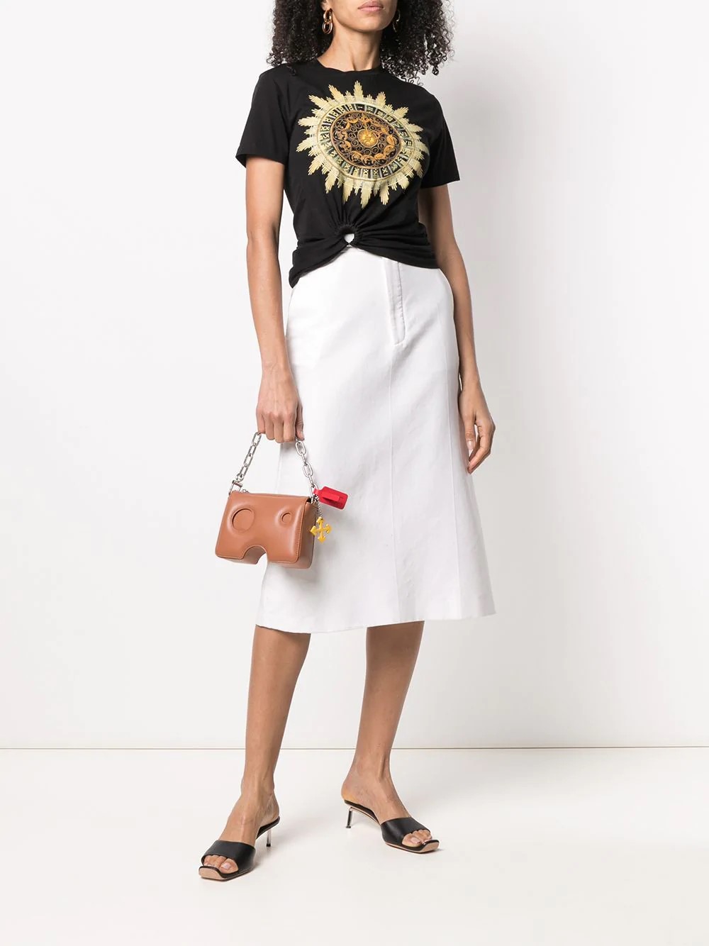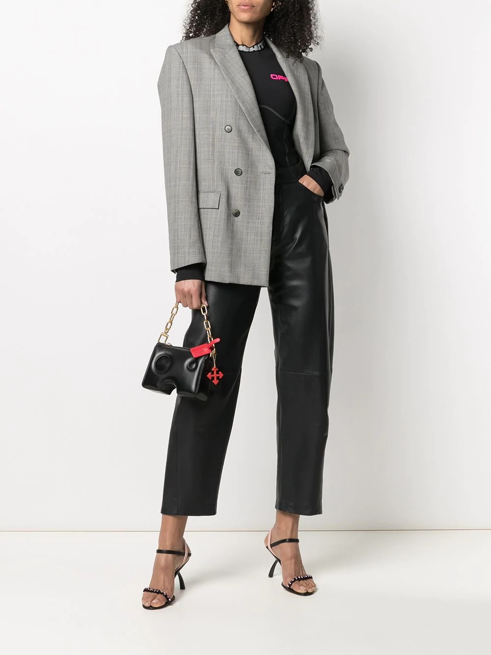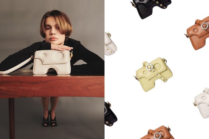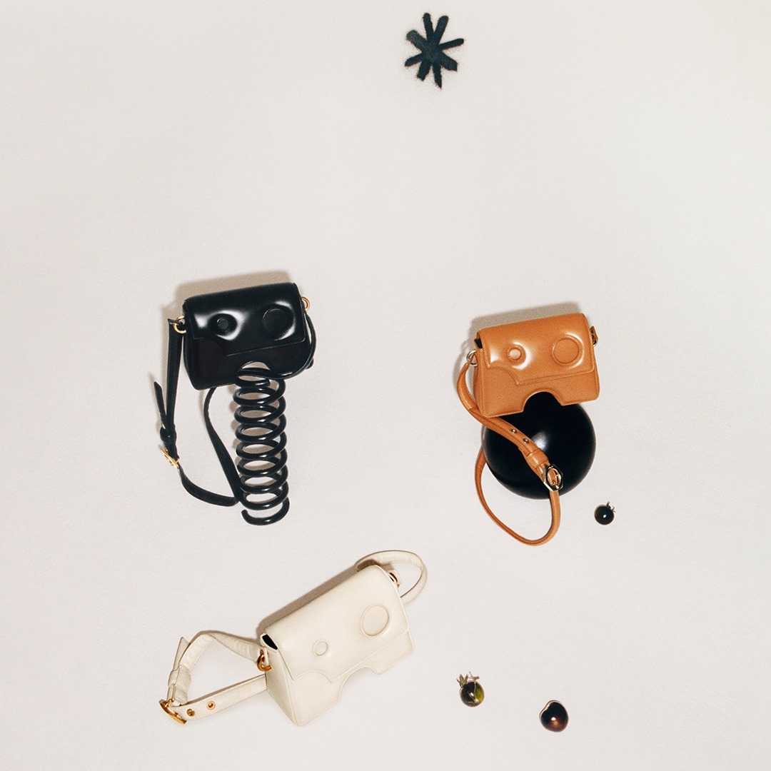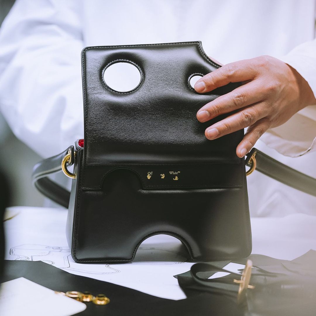 2021春夏系列,Off-White再度从“缺陷美”出发,结合流星包和奶酪包的两种特质,打造了全新的Burrow Bag洞穴包。包底部采用Swiss Flap的半月形镂空设计,皮革翻盖上两个“陨石坑”则借鉴Meteor Bag的设计。