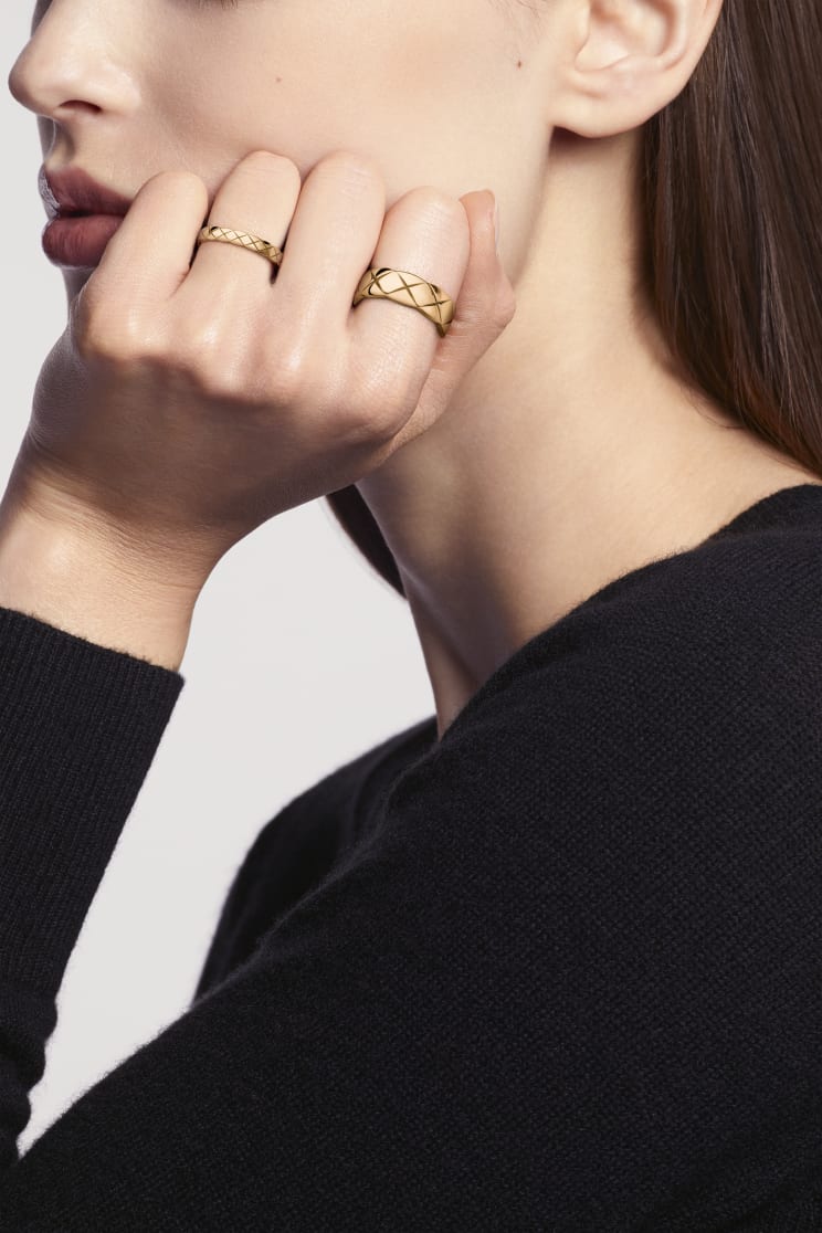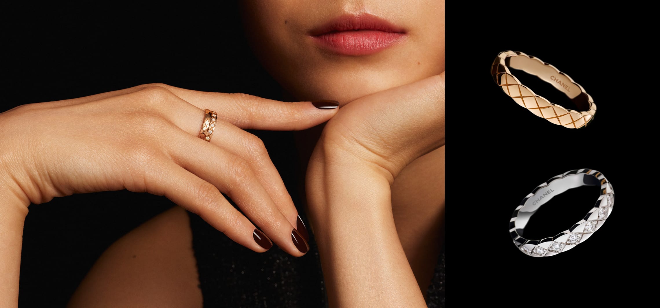 香奈儿于2015年推出的 Coco Crush 高级珠宝系列,以简约设计、流畅交错的线条、精致贵金属,将菱格纹重新演绎。Coco Crush最新推出的迷你版系列,在原版本系列基础上将轮廓做得更为纤细小巧。既可单独佩戴,也能随意叠戴。