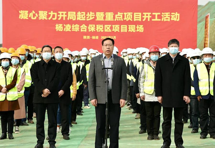 “杨凌示范区今年共安排重点项目190个,总投资748亿元,年度投资144亿元。一、二、三季度计划开工项目分别为39个、24个、15个,分别达到计划的50%、80%、100%,实现固定资产投资增长5%。”今天举行的全省凝心聚力开局起步暨重点项目开工活动,采用西安主会场和11地市+西咸、韩城线上开工的形式举行,杨凌分会场就设在杨凌综合保税区产业园项目建设现场。杨凌示范区党工委书记黄思光在杨凌分会场现场汇报了杨凌2021年项目建设的基本情况。示范区党工委副书记、管委会常务副主任史高领,党工委副书记刘天雄等领导在杨凌分会场参加活动。