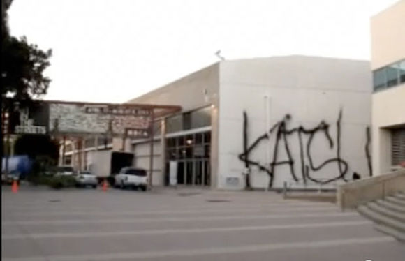 2009年,KATSU还不够大胆,像大多数街头艺术家那样只敢在墙上写一写,只不过用的工具是灭火器: