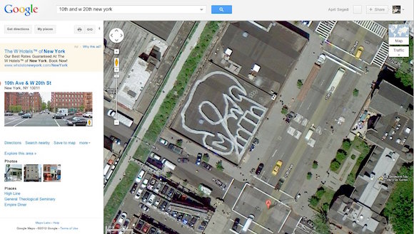 还把用KATSU构成的标志性的头骨写得连谷歌地图上都能看见: