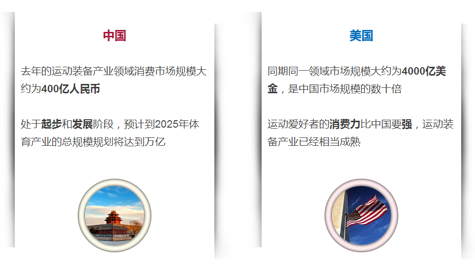 Z:确实,和美国相比,中国的运动装备市场潜力巨大。所以是不是这些诱人的数据让你决定转行做运动装备呢?