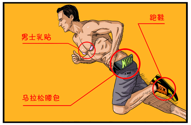 还有一个产品,就是乳贴,男士用乳贴。很多人在跑马之前都要买这个小东西,可以说是一种损耗品。爱穿比较宽松的T-恤跑马拉松的运动者,在跑的过程中双臂剧烈摆动时衣服和乳头之间会有摩擦,时间长了乳头可能会被磨破。这个伤不是很严重,但却很难受。所以,跑马拉松的男士在跑步之前要给自己贴乳贴。