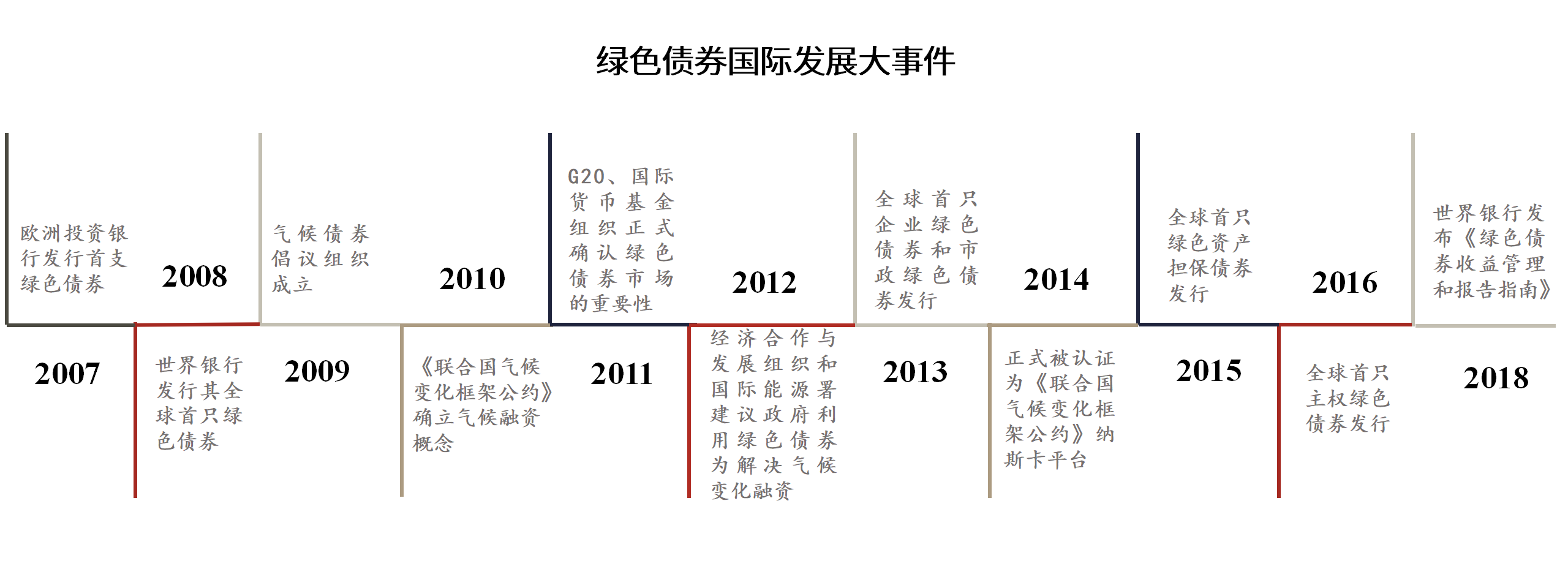 2009年,世界银行发行了第一笔真正意义上的标准化绿色债券,该债券由瑞典北欧斯安银行独立承销,发行规模约为23.25亿元,以瑞典克朗计价,6年期,票面利率3.15%。