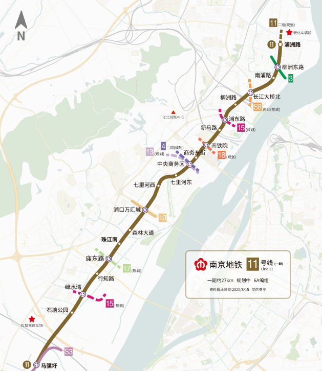 南京地铁11号线是南京地铁第二条全线位于长江以北的线路,一期工程整体位于浦口区,线路北起浦洲路站,由桥北地区向南进入江北新区中心区,经三桥片区后进入桥林新城,南至马骡圩站。