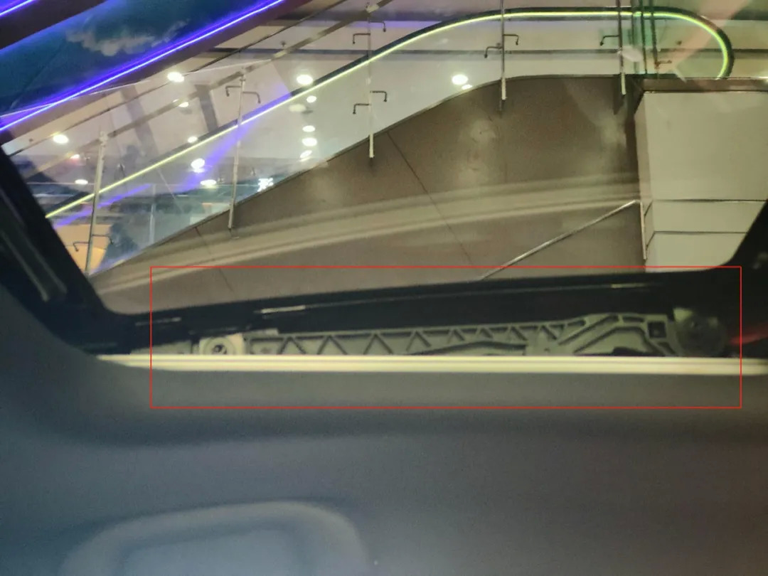 秦PLUS DM-i展车天窗露出的铰链结构,图源受访者
