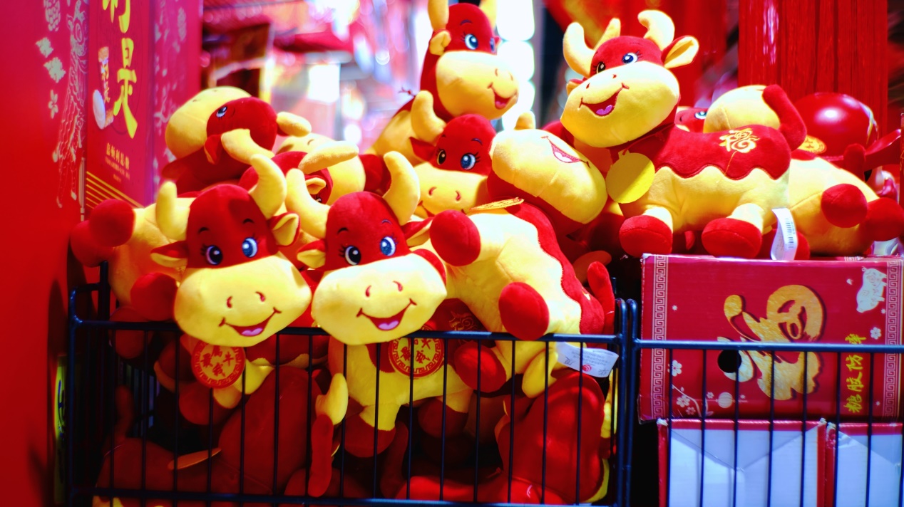 除了线上热热闹闹之外,线下的年味更浓。界面海南走访了南亚家乐福店了解到,今年三只松鼠坚果炒货礼盒、智利车厘子JJJ级礼盒、麦卢卡蜂蜜礼盒、雀巢巧克力礼盒等热门年货,在该门店销量水涨船高。另据工作人员称,今年消费者对进口零食、进口牛奶格外中意。而在宝真超市万福店内,界面海南看到门店内布置了各种红红火火的装饰和牛年元素,营造出浓郁的年节氛围。电梯入口通道上紧挨着酒水、春联、坚果礼物等年货商品,口罩、消毒水等防疫物品摆放在了显眼的位置。