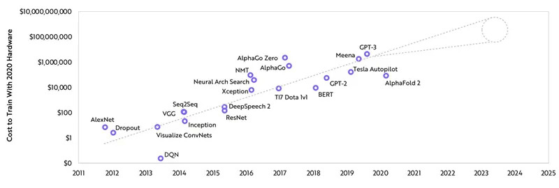 ▲AI训练成本逐年增加