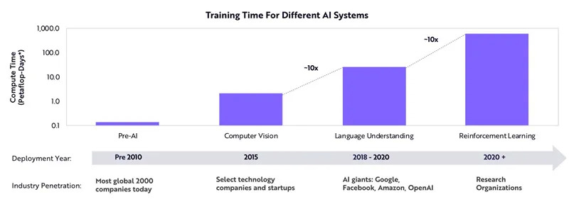 ▲不同AI系统的训练时间