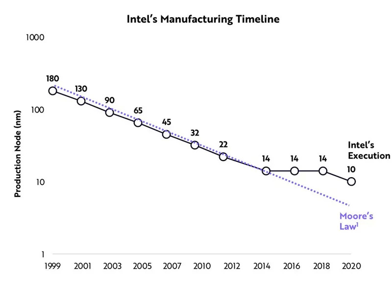 截至2020年,英特尔仍未推出10nm服务器芯片。而同时台积电正在批量生产5nm处理器。
