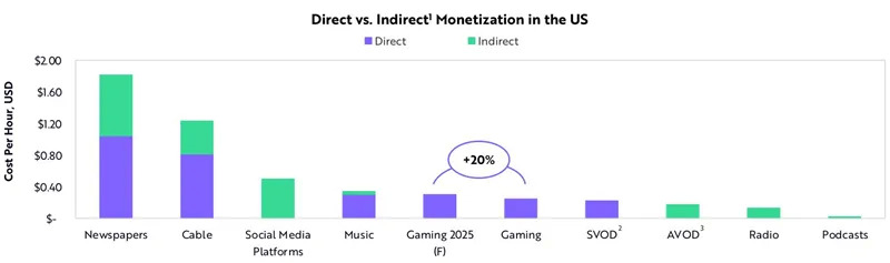 ▲美国游戏的直接盈利与间接盈利