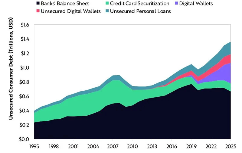 ▲美国无担保消费者债务总额