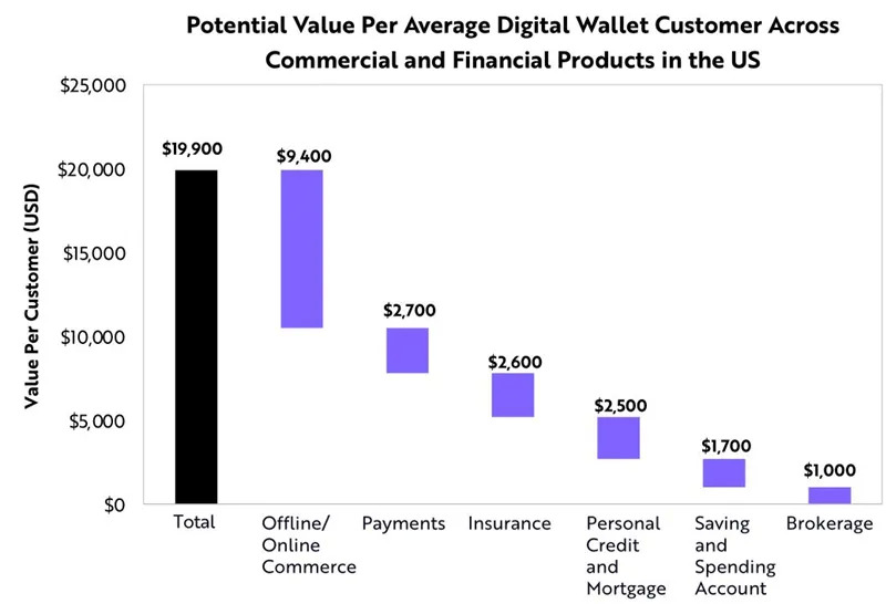 如今,数字钱包正开始渗透到包括经纪和贷款在内的所有传统金融服务领域。数字钱包可以成为金融产品之外的商业活动的主导平台。