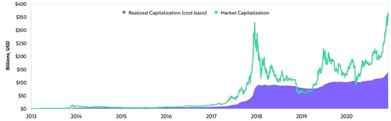 ▲2020年,比特币的总成本基础创下新高
