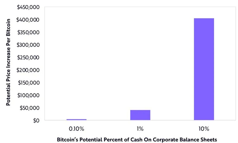 ARK估计,如果标准普尔500指数成份股公司将1%的现金用于比特币,比特币的价格将上涨约4万美元。