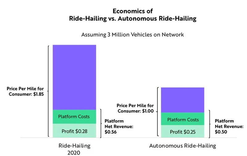平台供应商,或拥有自动驾驶技术的公司,应该获得自动叫车服务利润的最大份额。
