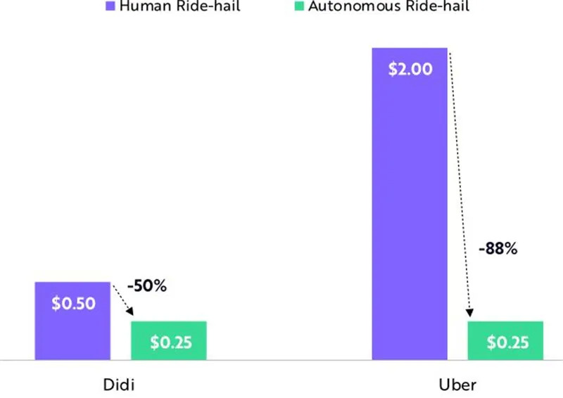 ▲人工叫车vs自动叫车在中国和美国的每英里平均价格