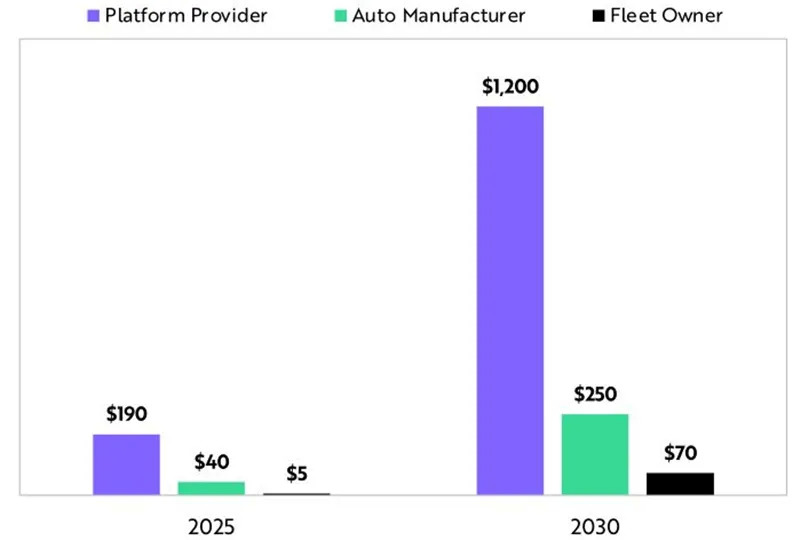 到2030年,拥有自动叫车服务车辆的车队所有者每年可以产生约700亿美元的收入。