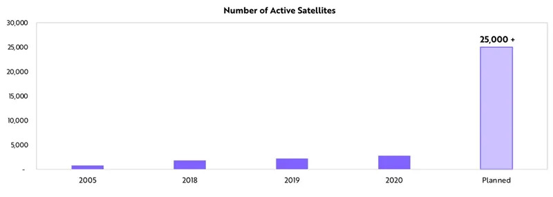 由于发射成本降低,预定进入轨道的卫星数量显著增加。随着卫星网络的发射和利用数据为地面企业服务,卫星可以促进GDP增长。