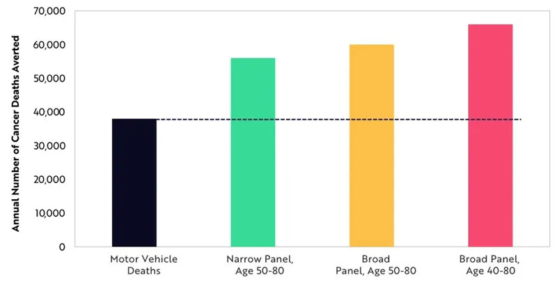 因此,美国的多种癌症筛查市场将扩大到1500亿美元。在美国,一项多种癌症筛查方案每年可以避免66000例癌症死亡,每年挽救140万人的生命。