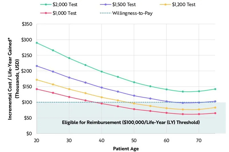 当价格降至1000美元以下时,几乎所有年龄超过40岁的人群都可以进行有效地癌症筛查,仅在美国就可能每年拯救140万人的生命。