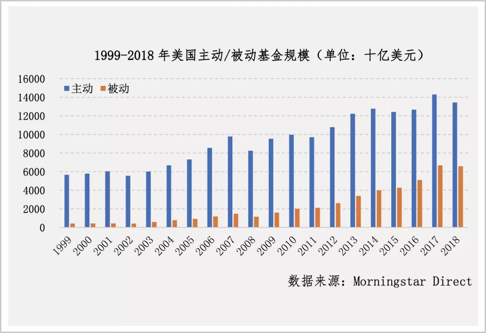 过去二十多年,美国基金市场中规模、增速最快的基金类型,是以特定指数成分股作为投资对象的被动型基金,靠基金经理自身判断选股的主动型基金越来越不被投资者看好。