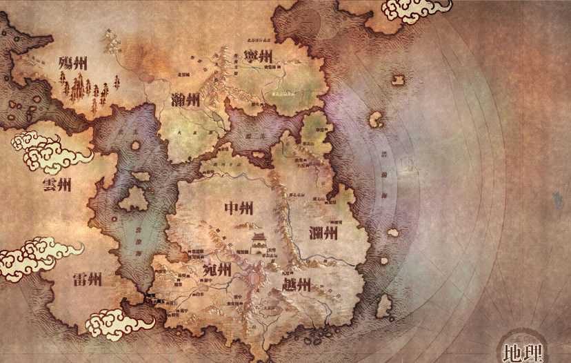 例如,这些作者设定将天空划分为九个星域:殇阙(主极寒)、瀚阙(主博大)、宁阙(主高远)、中阙(主繁衍)、澜阙(主山海)、宛阙(主财富)、越阙(主生长)、云阙(主热旱)、雷阙(主水力),九个星域分别对应殇、瀚、宁、中、澜、宛、越、云、雷九个州。其中,殇州、瀚州、宁州属于北陆,中州、澜洲、宛州、越洲属东陆,云州、雷州属西陆。陆地间有三个较浅内海,为涣海,潍海和滁潦海。