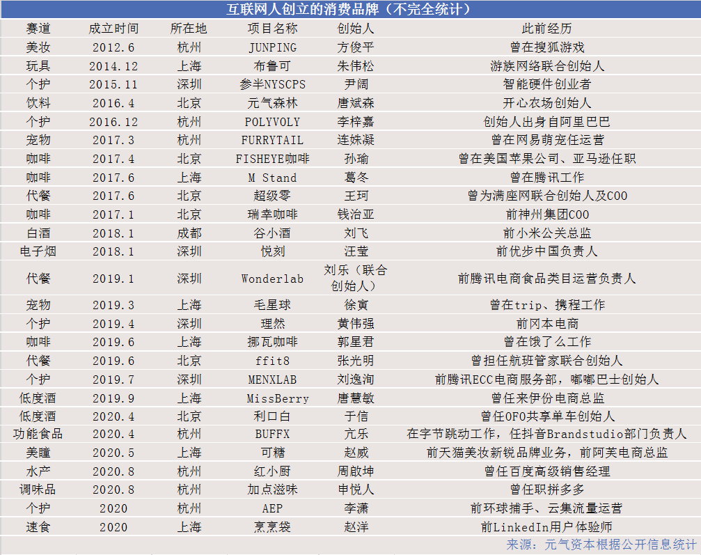 1、有哪些新消费品牌的创始人来自互联网行业?