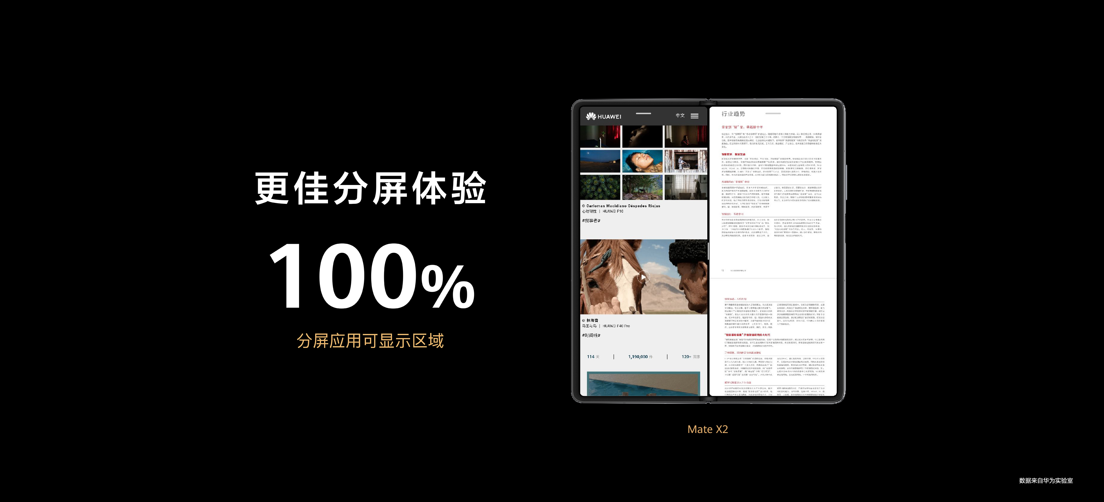 目前,华为Mate X2已完成TOP 200应用的100%适配,TOP 1000应用的95%适配,Top 3000应用的80%适配。