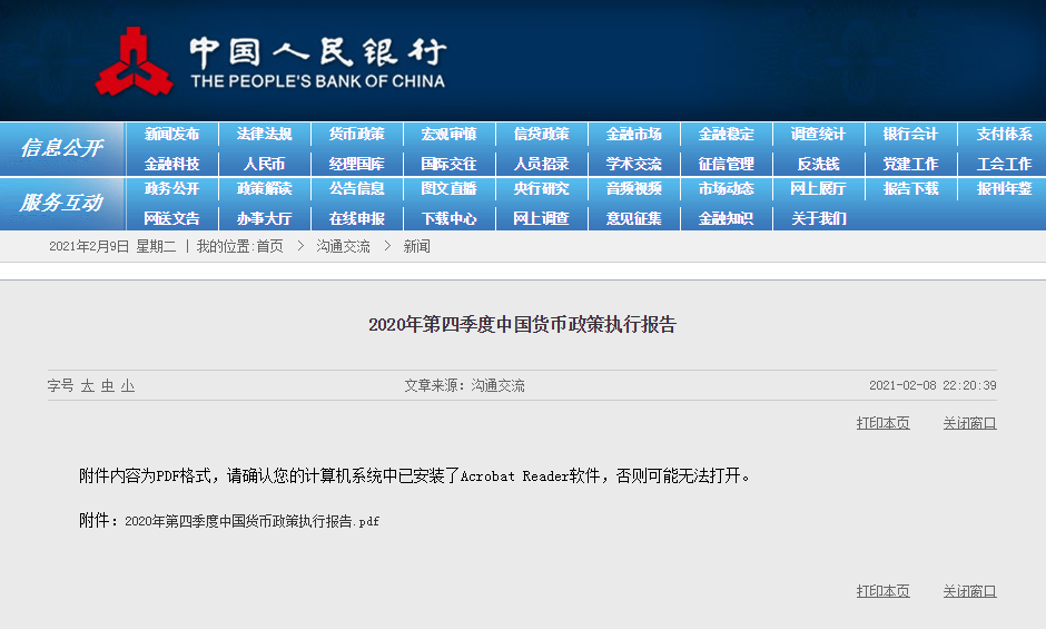 2月8日晚,央行发布《2020年第四季度中国货币政策执行报告》(下称“《报告》”),明确回应了市场担忧。