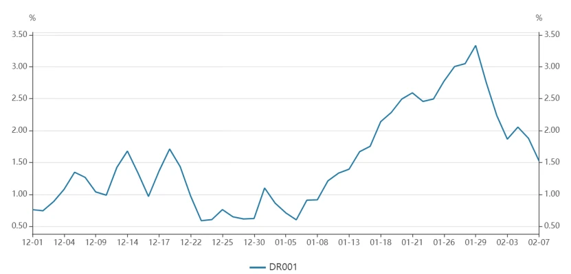 尽管央行随即在2月7日、2月8日两天,开展了合计1600亿元的逆回购操作,实现了资金净投放,压降了DR001,但市场有关“货币政策收紧”的担忧并没有被解除。