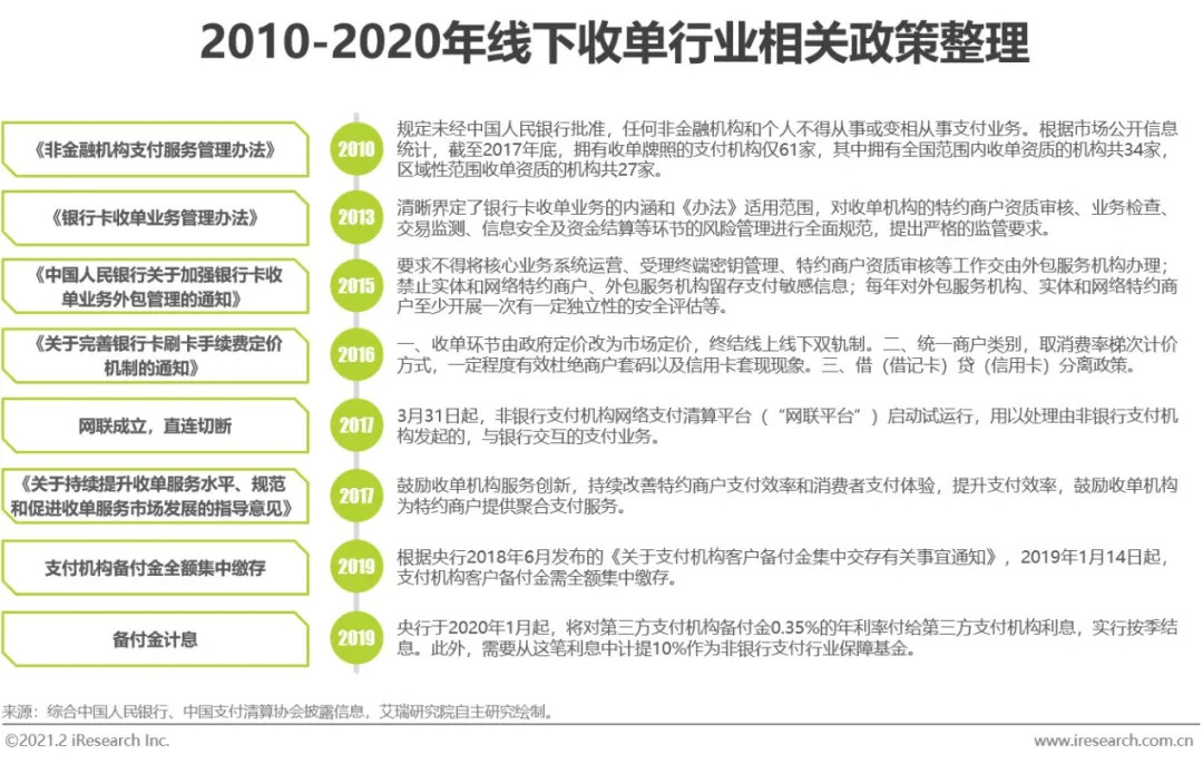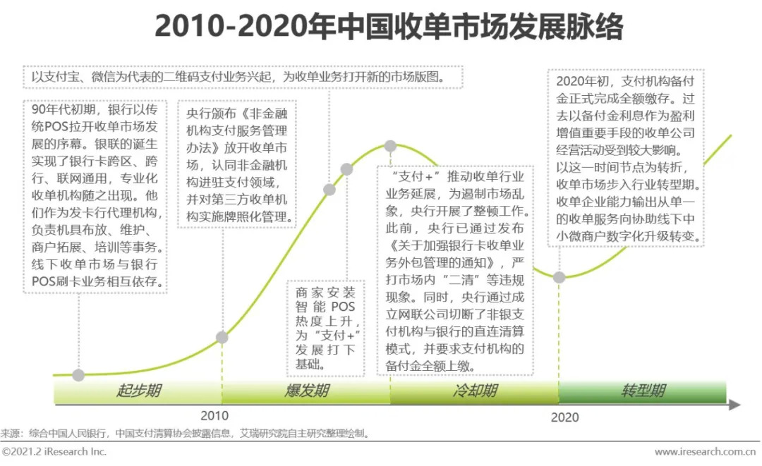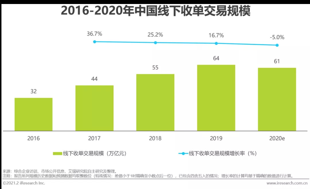 线下收单伴随非现金支付增长而扩张,2020年步入转型期