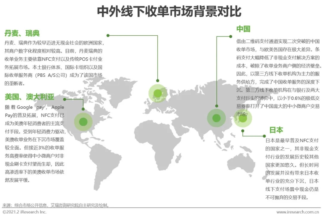 依托卡端支付成长的发达国家线下收单市场与依托于移动支付的中国线下收单市场存在诸多差异