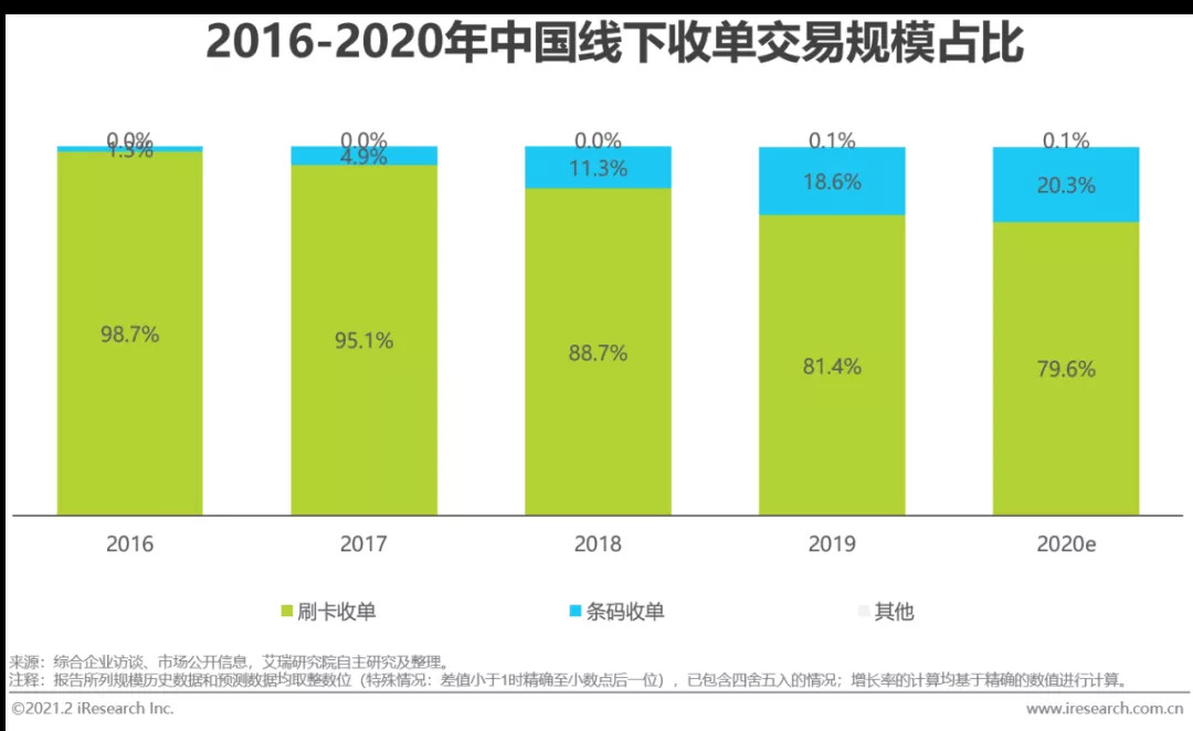 目前,市场总交易规模已突破60万亿,条码收单占比超过20%。