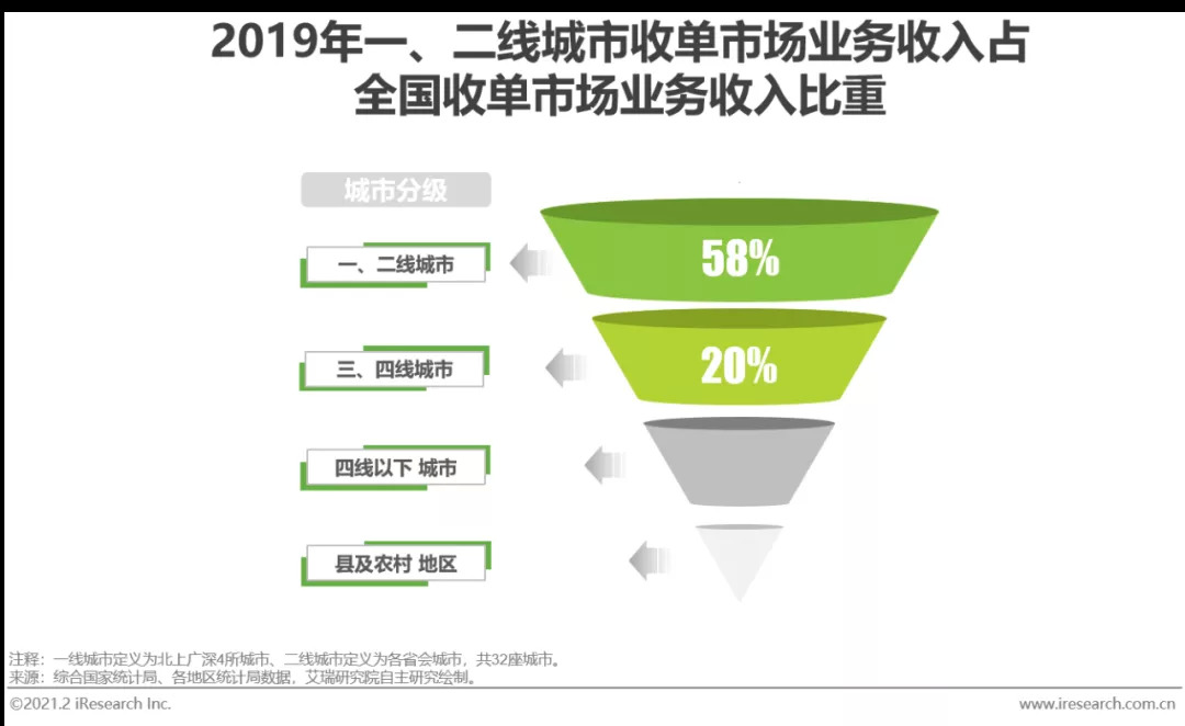 2019年,中国收单市场一、二线城市业务规模占比接近60%,三四线城市业务规模占比20%,基于大中型城市商户需求的收单业务在整个市场占据较高比重。对比中国一、二线城市社会消费品零售额占全国总额36.7%;一、二线城市GDP占全国GDP总额35.3%。中国三、四线城市及以下地区的消费品零售需求仍在市场中占据重要地位,而由此衍生的下沉市场收单服务需求仍未被深度覆盖。这将成为转型期收单机构的重要盈利增长点。