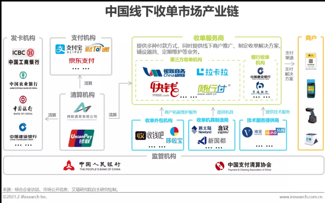 线下收单业务是指消费者通过POS刷卡以及扫码支付等方式付款后,专业机构向线下商户提供的非现金支付收款及结算服务。它伴随线下支付方式的演变应运而生,是非现金支付链条上的重要一环。