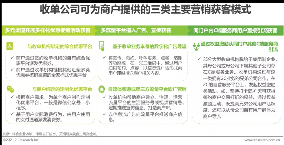 “人”即指用户,收单机构以“支付+营销获客”,帮助商户开展聚合营销。