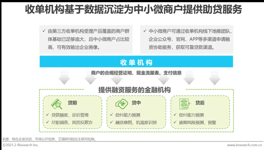 线下收单机构可基于商户交易数据沉淀,协助商户贷款融资