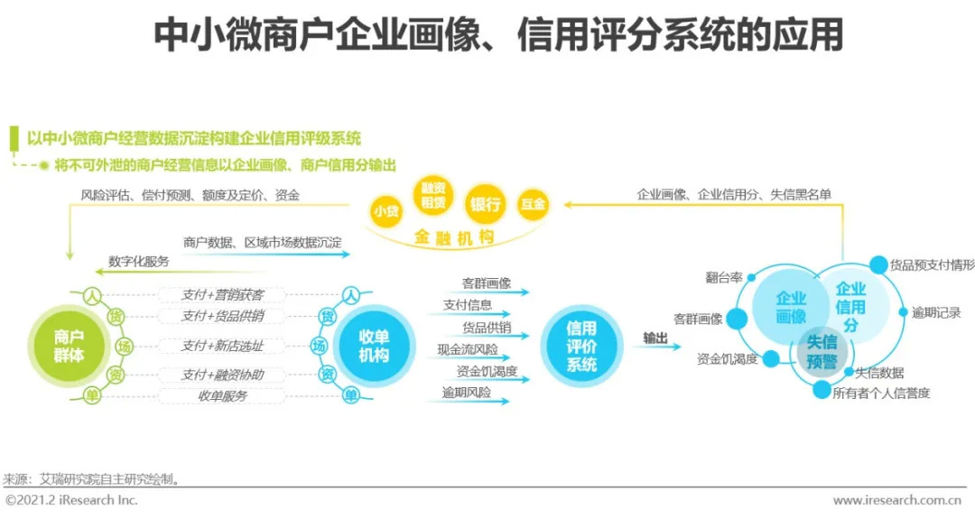 线下收单机构基于多维度数据沉淀,构建中小微商户的企业信用分计算系统,对外输出企业综合画像