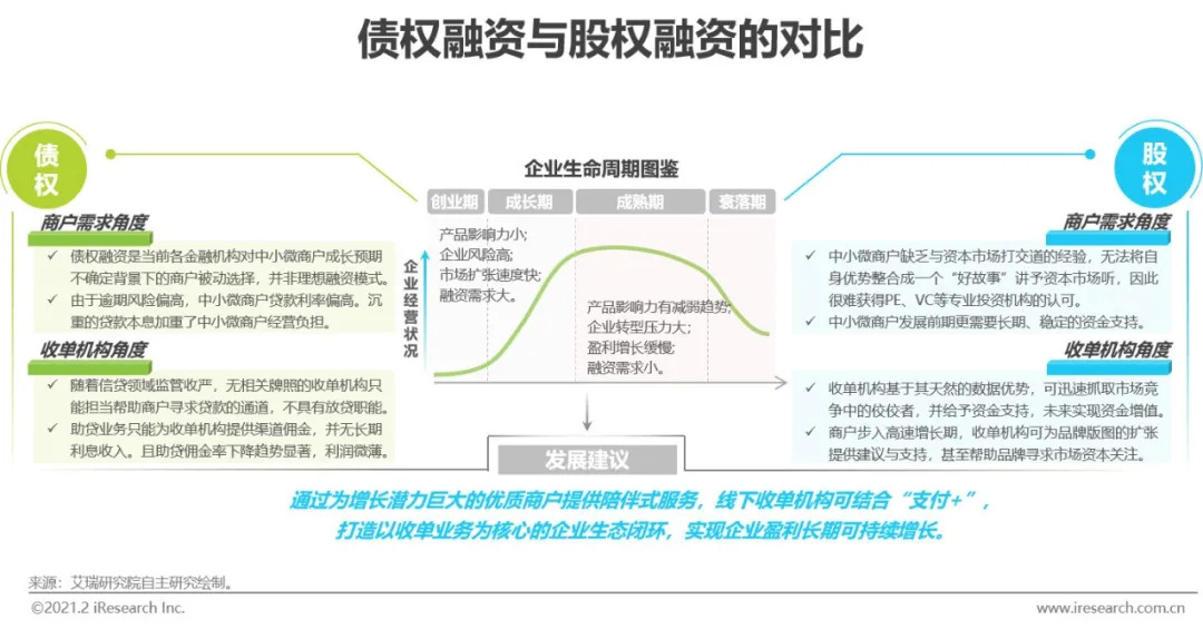 除了针对中小微商户融资开展“助贷”服务外,收单机构还可以根据自身资金储备在优质商户发展初期以投资入股的方式提供资金支持。处于创业期或成长期的商户,一般有较大资金需求,现金流相对紧缩。但由于行业竞争变幻莫测,大部分商户在早期中小微阶段很难获得市场资金认可。于商户而言,债权融资需要以企业固定资产、存量资金、所有人个人连带责任等要求为背书,并非理想的融资模式。于收单机构而言,助贷服务无法实现自有资金增值、合规风险大,目及未来的战略投资才是长期财富扩张的密码。