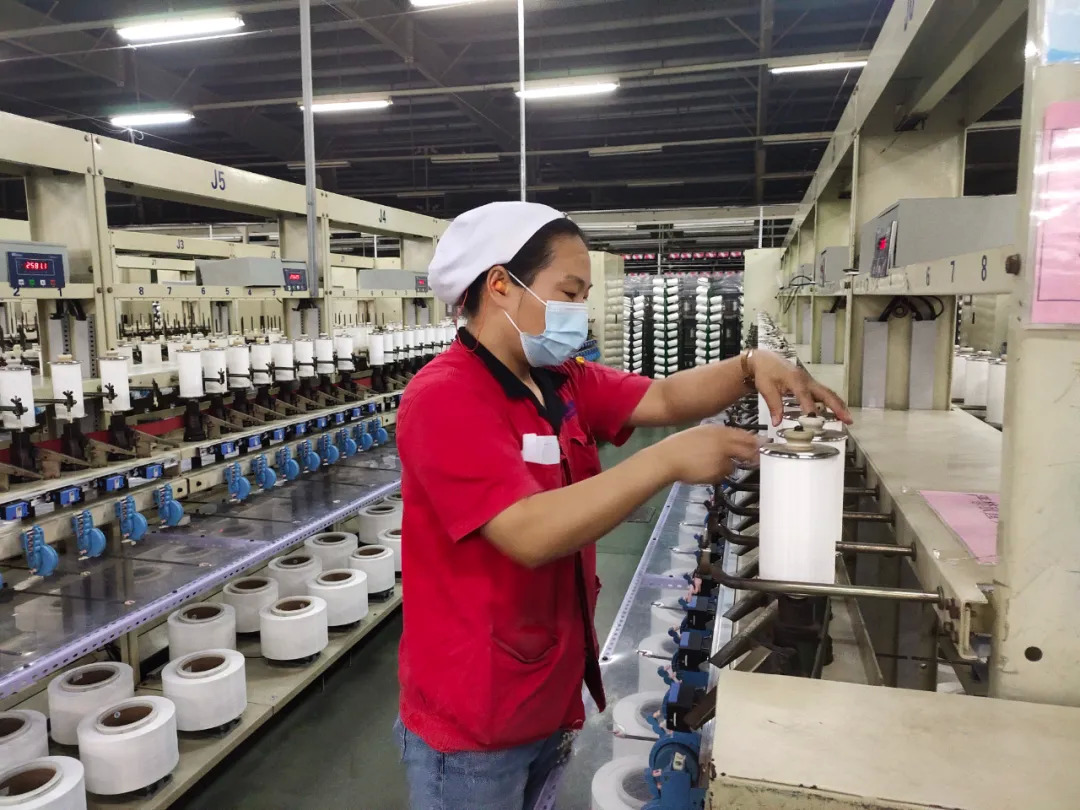 四川恒创是一家专业生产、开发特种纱线的中外合资企业,口罩厂家所需要的纤维材料就是他们的产品之一。该公司有职工300余人,有许多还是外地人,为响应外地员工就地过年政策,春节期间超一半职工坚守岗位。“在疫情防控常态化情况下,我们的产品需求量很大,所以春节期间都没有停产,人员和设备方面都做好了最充足的准备,就是为了做到企业效益和社会效益双丰收。”说起为何春节不停产,喻勇德如是说。