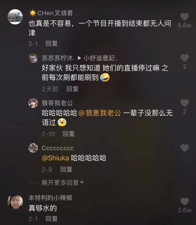 长达四个多小时的入营首秀直播,成功劝退大批路人。从直播回放数据来看,点赞、评论逐“集”递减。后期观众流失速度明显加快,全靠好平静、小霸王、宸荨樱桃等头部网红勉强维持热度。