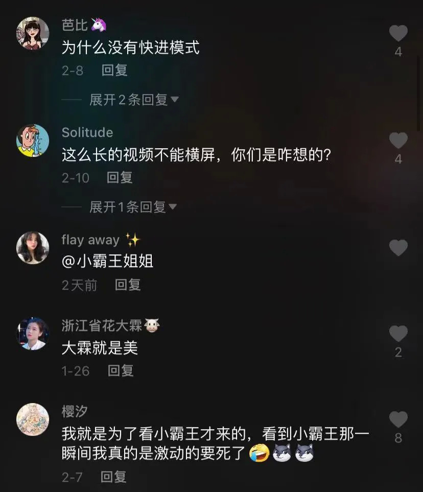一段时间,抖人全员在追这出民间恋综,还产出了大量二创视频。#小霸宠 二辰的话题播放量破亿,互动场面屡登热搜,“牛油果”夫妇出圈走红。若不是二辰被封号,吃瓜群众怕是还要追上千百集。