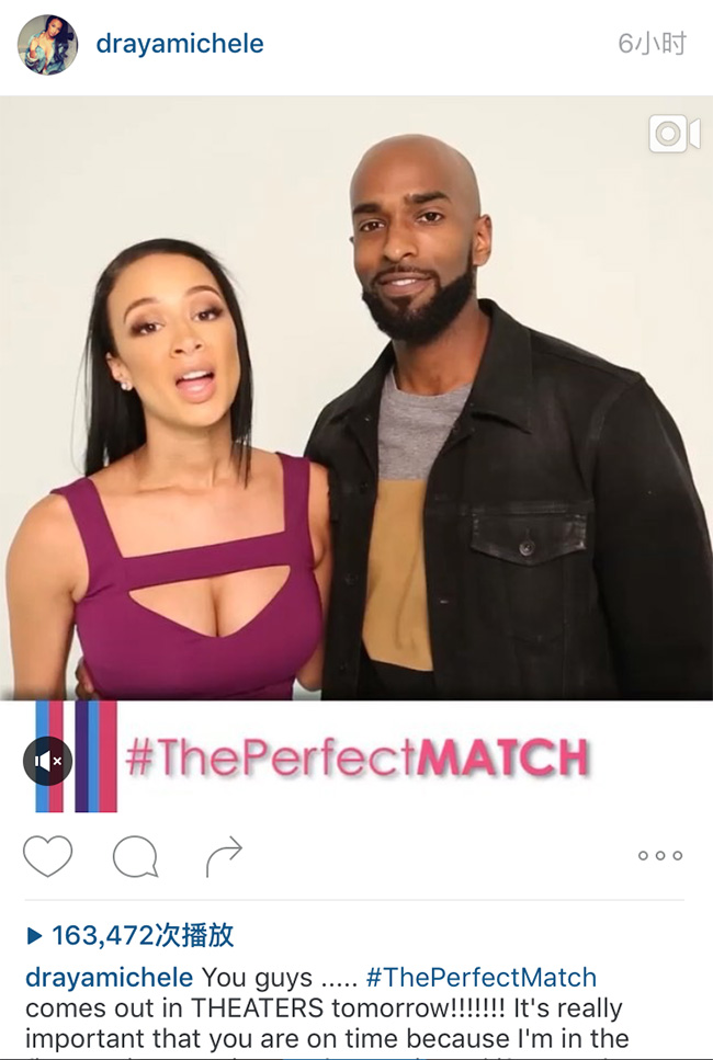 比如电影公司Codeblack是一家针对美国黑人消费群体生产电影的公司。它最近就选择主要在Instagram上宣传最近喜剧片“The Perfect Match”(《佳偶天成》)。在电影3月11日上映的前一周,Codeblack请了6位Instagram上的网红推荐这边影片,其中包括拥有450万粉丝的演员、模特兼服装设计师Draya Michele、拥有250万粉丝的模特Lira Mercer等。