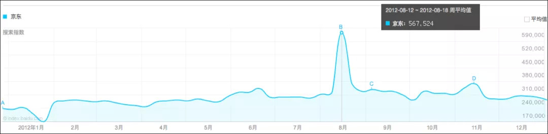 2012年8月15日,明确参与价格战的苏宁、国美、京东,相比14日同期流量均有大幅增长,京东的百度指数更是迎来高峰,超过平时5倍。