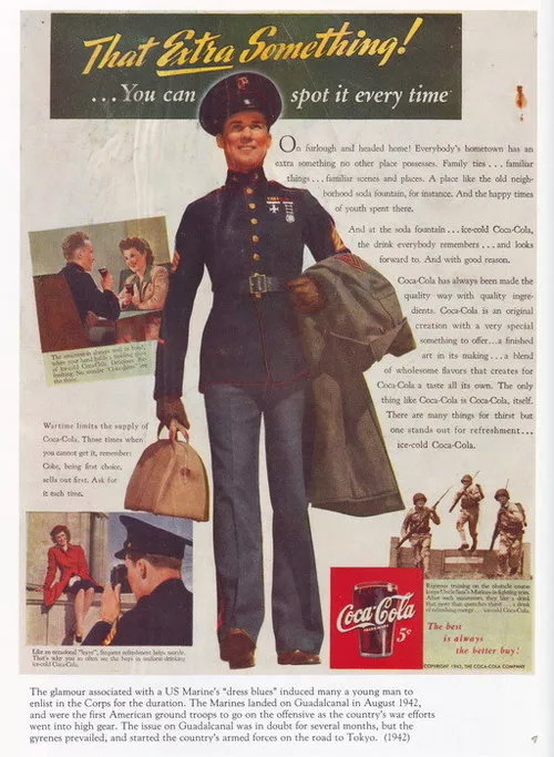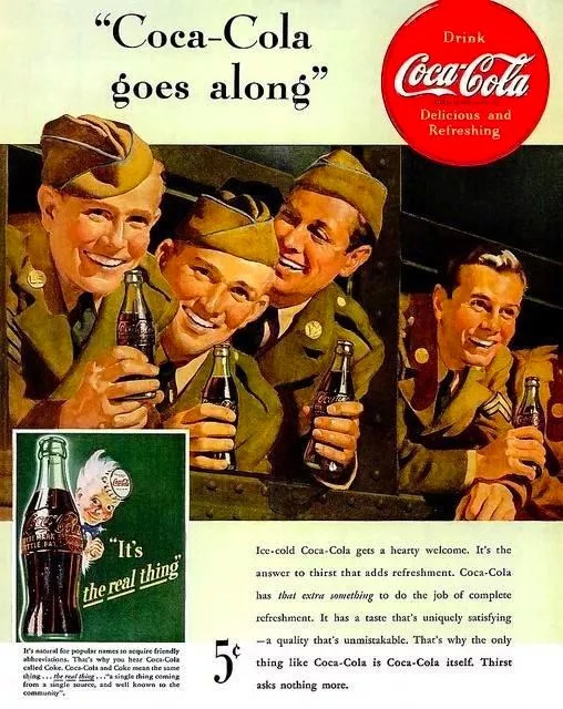 可口可乐中的咖啡因、苏打水可以提神醒脑,糖分不仅可以快速补充能量,还能迅速为饮用者带来快乐,再加上军中没有同类竞品的存在,很快喝可口可乐成为美军内部普遍的嗜好。