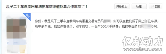 某传统车商告诉亿邦动力网,按照瓜子二手车的性格,瓜子拍(车速拍)一但准备充分,必然变更广告说法。“当初‘14天无理由退车’都改成了‘14天可退车’,现在一样能改。而且车商们分布特别碎片化,说句不好听的,有奶就是娘,也不会特别抵制瓜子二手车。”