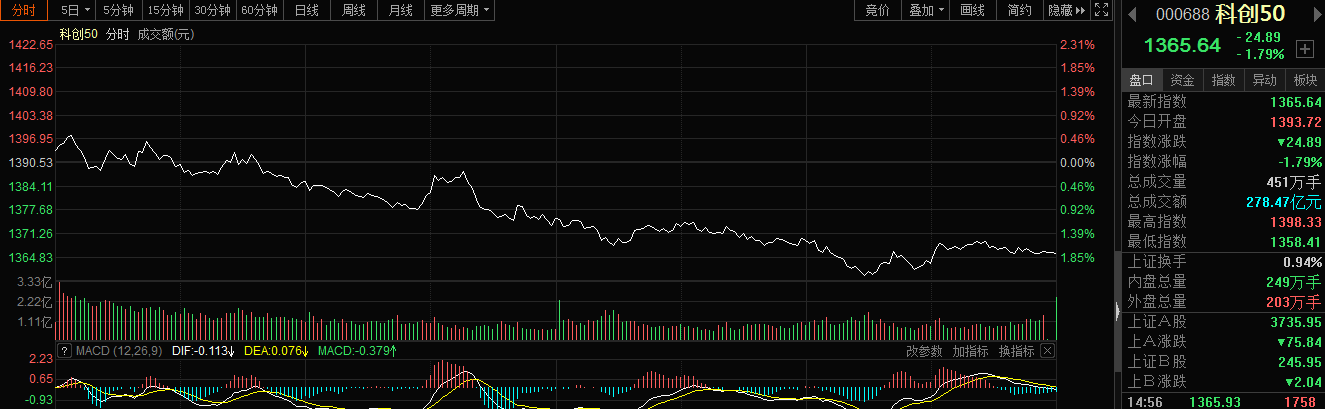 科创板收评:华锐精密涨停,科创50指数跌近2%