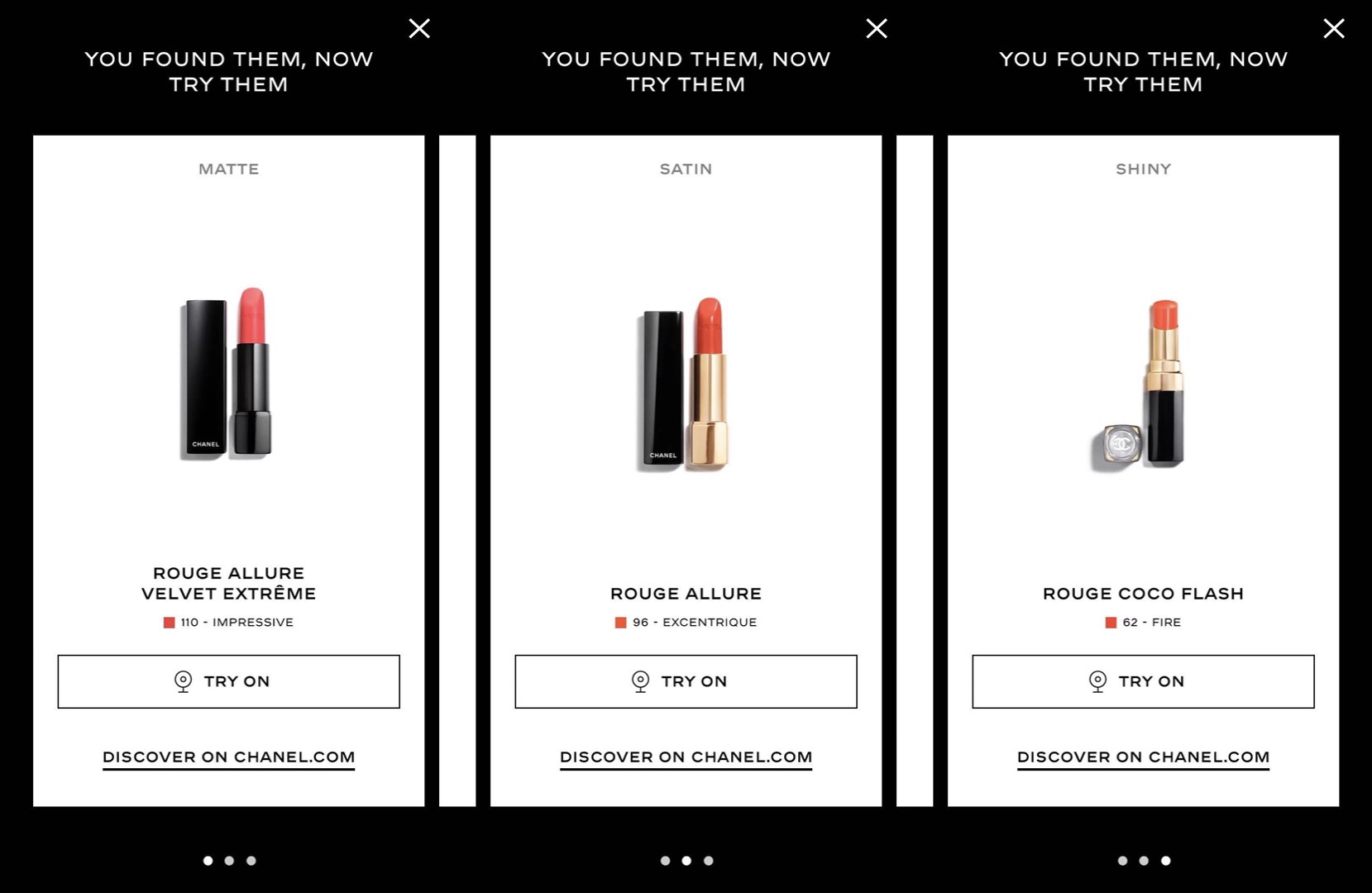 除了香奈儿,不少化妆品集团和奢侈品集团也推出了虚拟试妆或虚拟试装的服务。